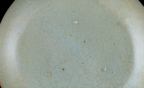 由于釉中含钙较高,使其具有轻微的乳浊效果,视觉上如含雾,这是汝窑釉色最大的魅力之一。