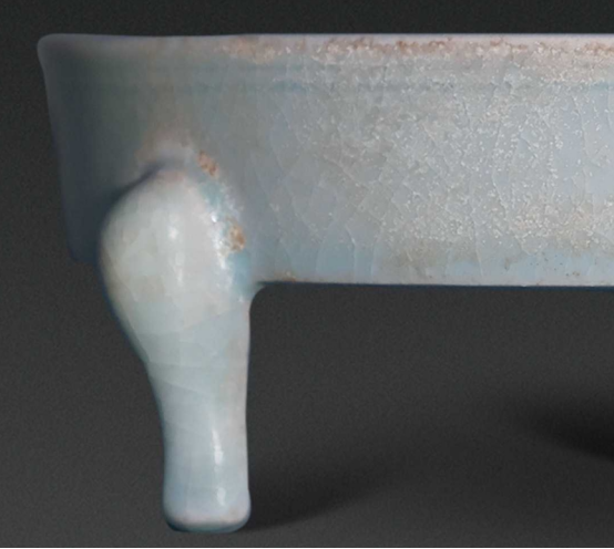 青灰胎为北宋汝官窑専有胎土,器物胎质细密,但非全然精白。