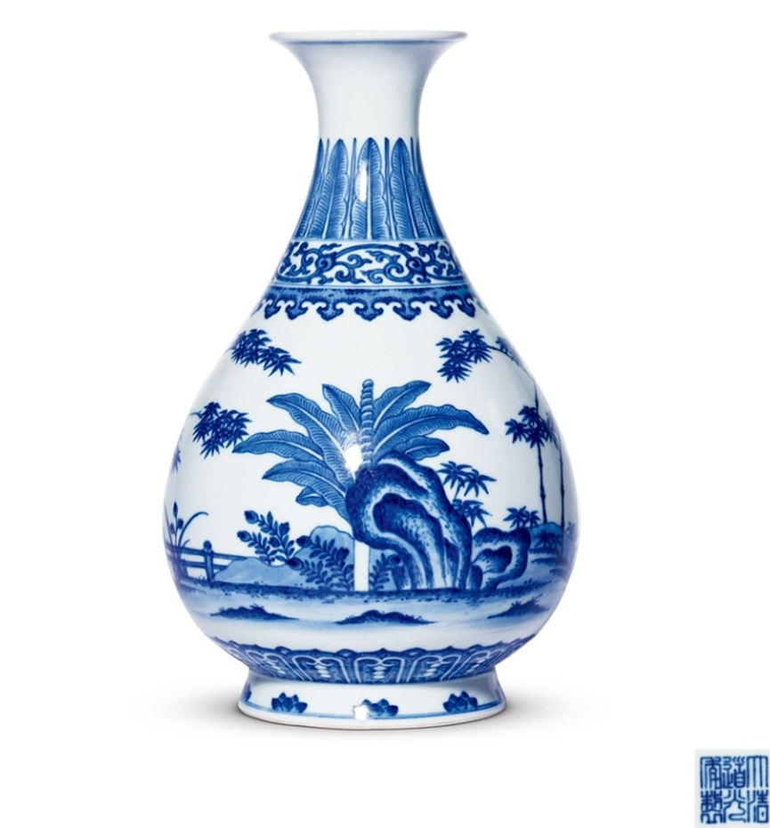 青花瓷青料多取自進口“蘇麻離青”與本地料混用,呈色穩重淡雅。繪工細密、層次分明,與康熙、雍正時期的濃烈風格迥異,更顯沉靜含蓄。常見器形如筆筒、梅瓶、碗、盤、天球瓶等。